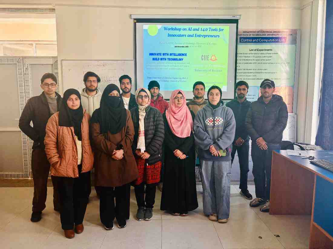 The Workshop on AI and Industry 4.0 Tools for Innovators and Entrepreneurs was organized by the Centre for Innovation, Incubation and Entrepreneurship (CIIE), Institute of Technology, University of Kashmir on 26 November 2025 at 11:00 AM at the Department of Electrical Engineering, Block A, Institute of Technology, Zakura Campus, Srinagar.